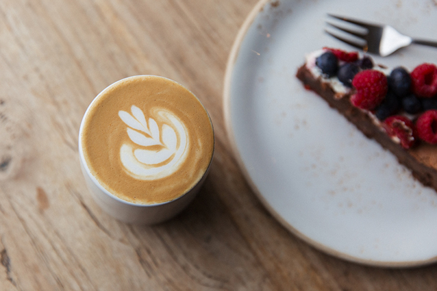 [Káva a dort ve vídeňské kavárně Jonas Reindl Roastery.]