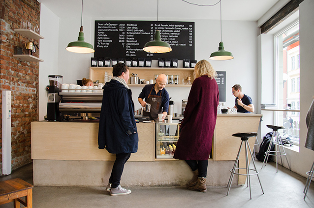 [Mistr světa v přípravě filtrované kávy Odd-Steinar Tøllefsen za barem své kavárny Supreme Roastworks v Oslu.]