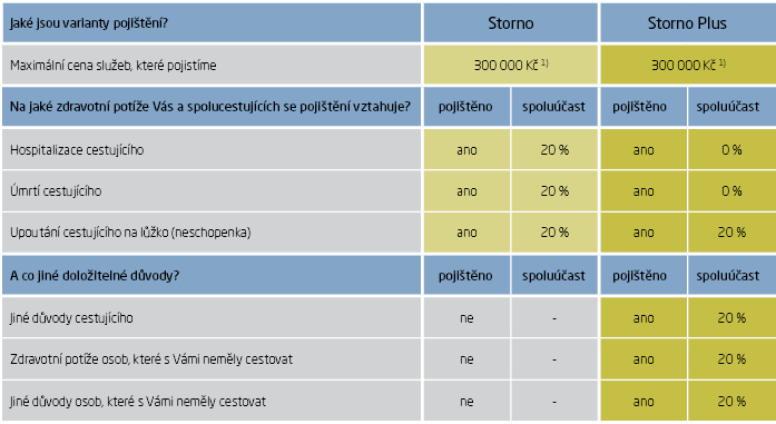 Pojištění storna lze standardně uplatnit v případě zdravotních potíží.  „Varianta Storno Plus se vztahuje i na celou řadu dalších doložitelných důvodů, kvůli kterým klient nemůže na dovolenou odjet. Může jít např. o ztrátu zaměstnání, rozvodové řízení, poškození bydliště, zrušení schůzky obchodním partnerem, dopravní nehodu cestou na letiště nebo třeba předvolání k soudu. V případě hospitalizace cestujícího dokonce klient dostane zpět 100 % zaplacených prostředků.“ říká Vlastimil Divoký.